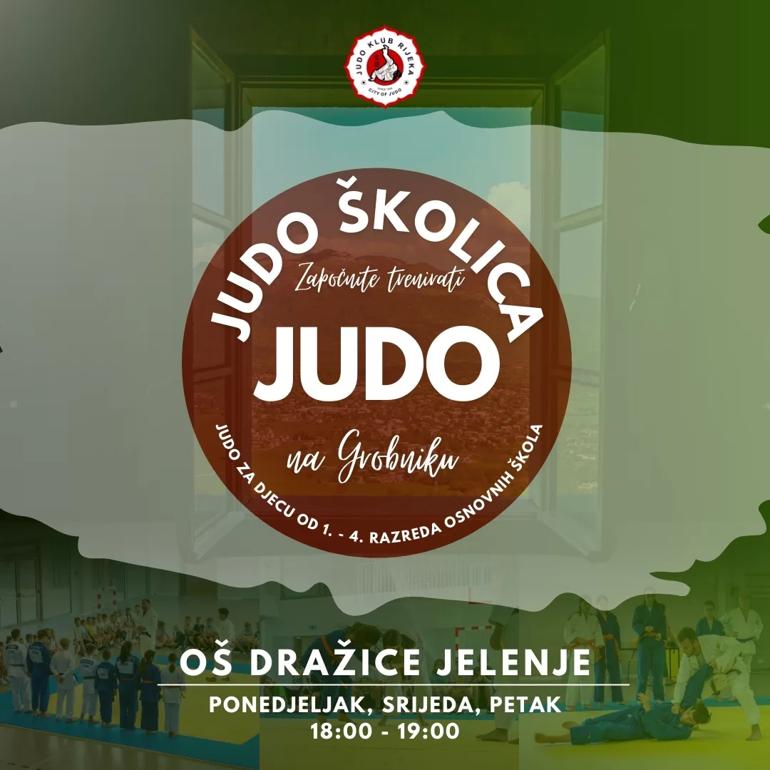 Judo klub Rijeka otvara novu judo školicu na Grobniku u OŠ Jelenje-Dražice! Program je namijenjen djeci od 1. do 4. razreda, a treninzi se održavaju ponedjeljkom, srijedom i petkom od 18 do 19 sati.